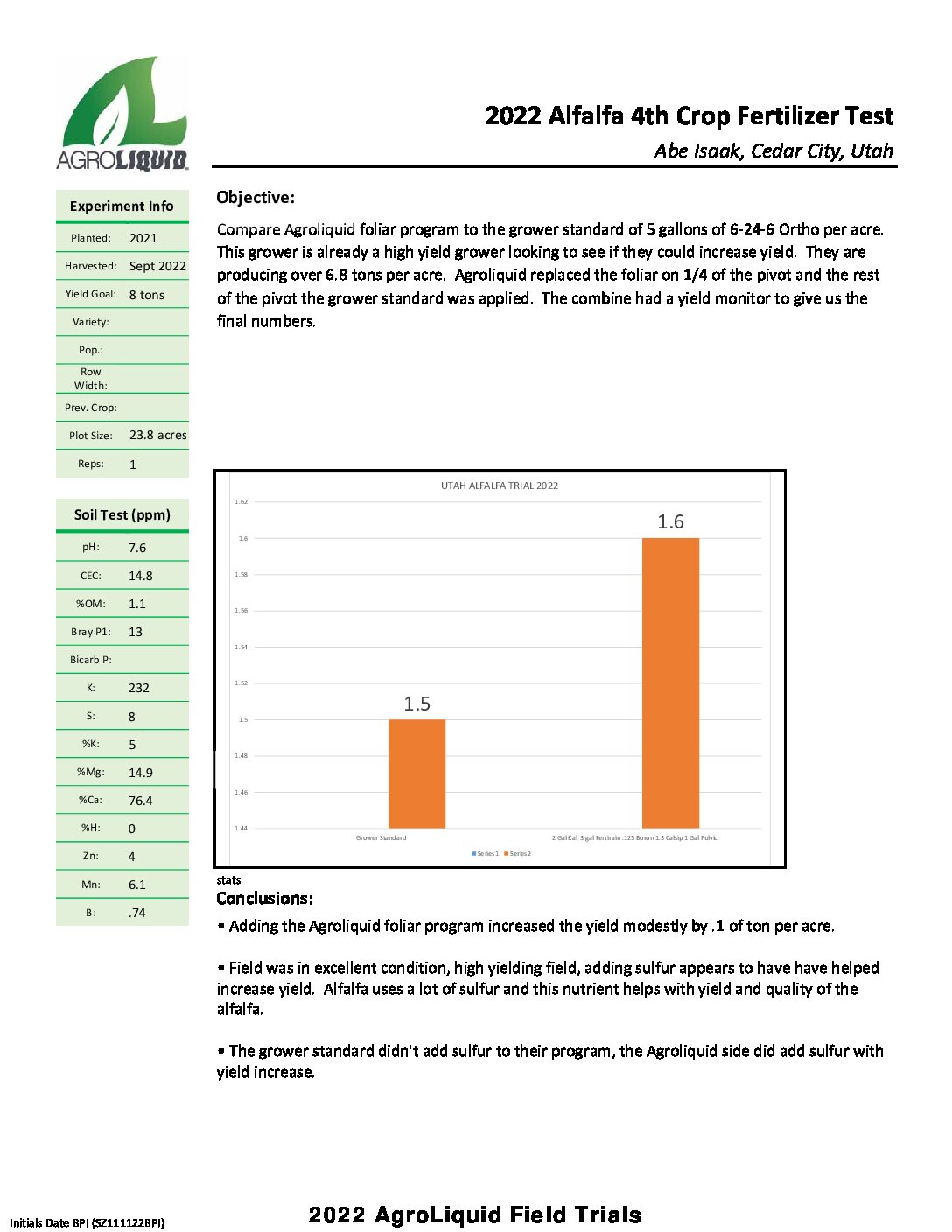 Crops: Alfalfa. States / Provinces: Utah. Nutrients: Programs. Years: 2022. Applications: Foliar.