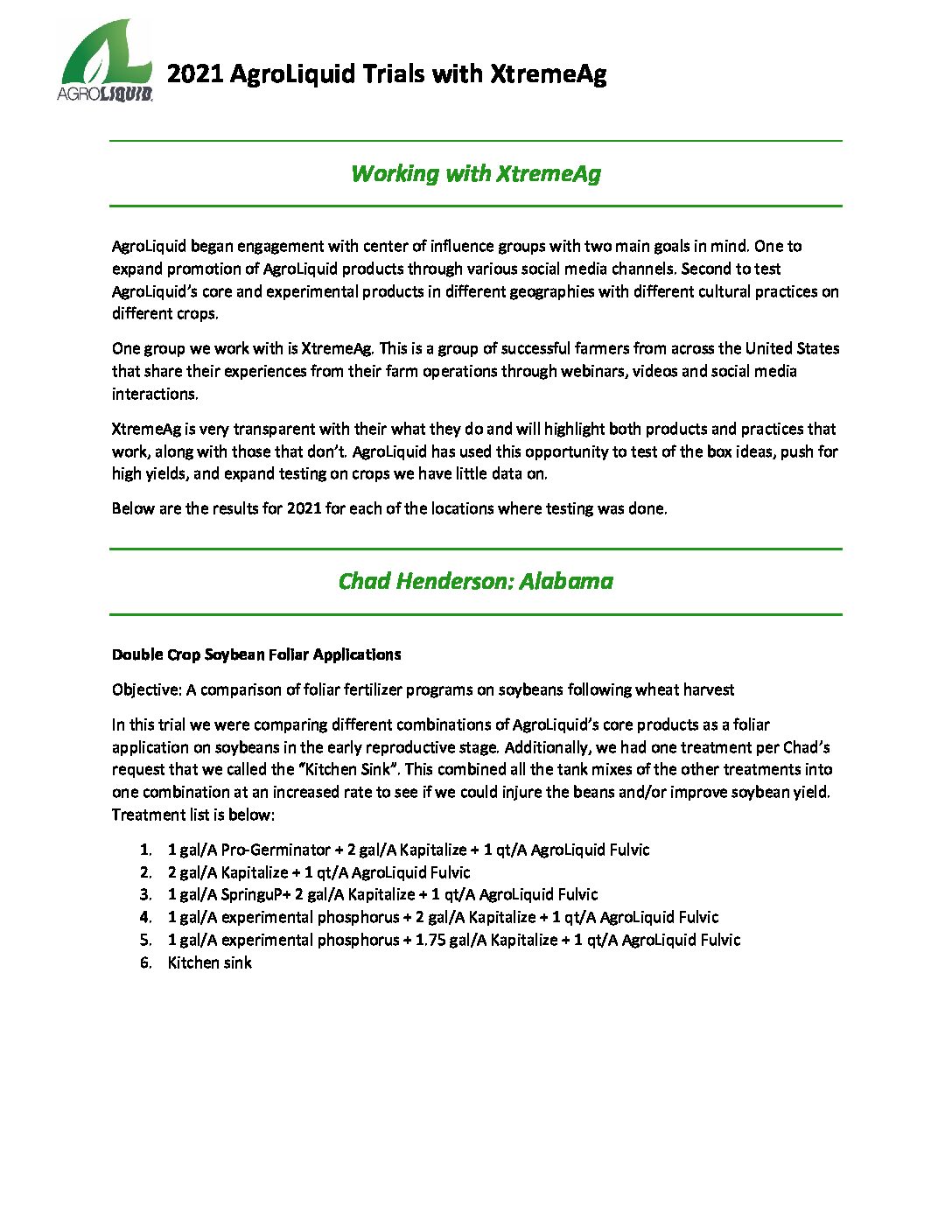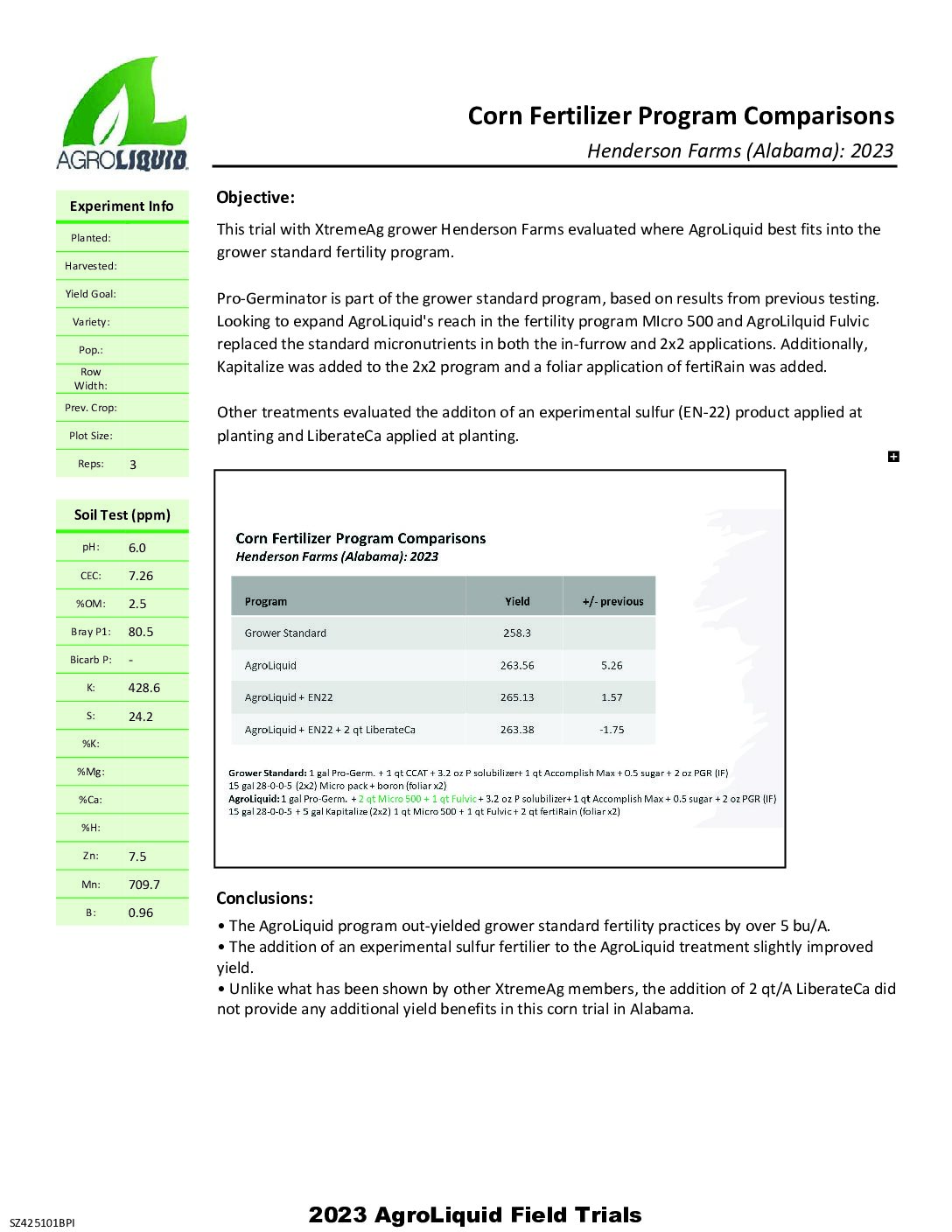 This trial with XtremeAg grower Henderson Farms evaluated where AgroLiquid best fits into the grower standard fertility program.