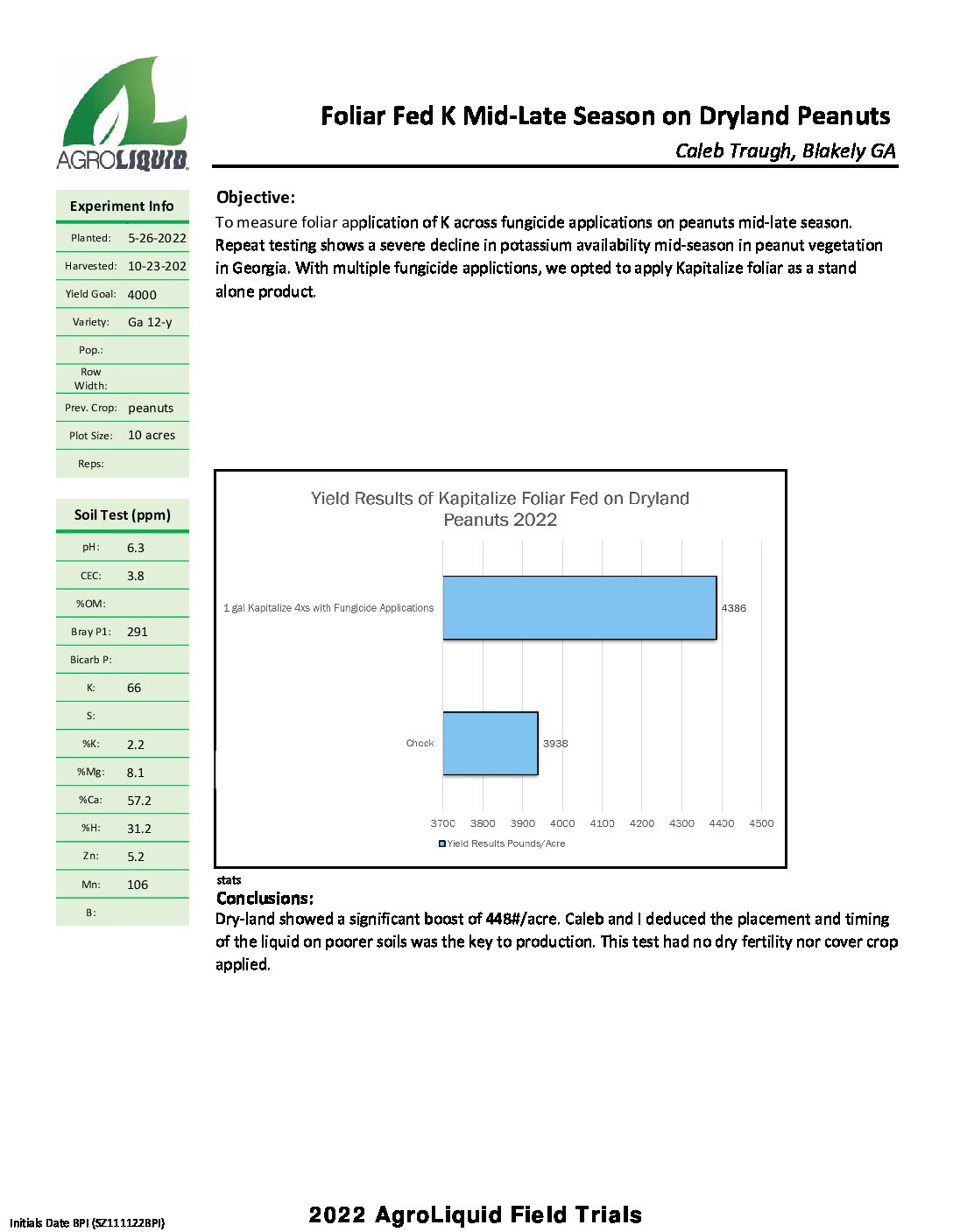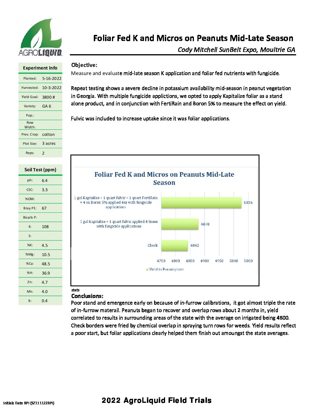 Crops: Peanuts. States / Provinces: Georgia. Nutrients: Potassium. Years: 2022. Applications: Foliar.