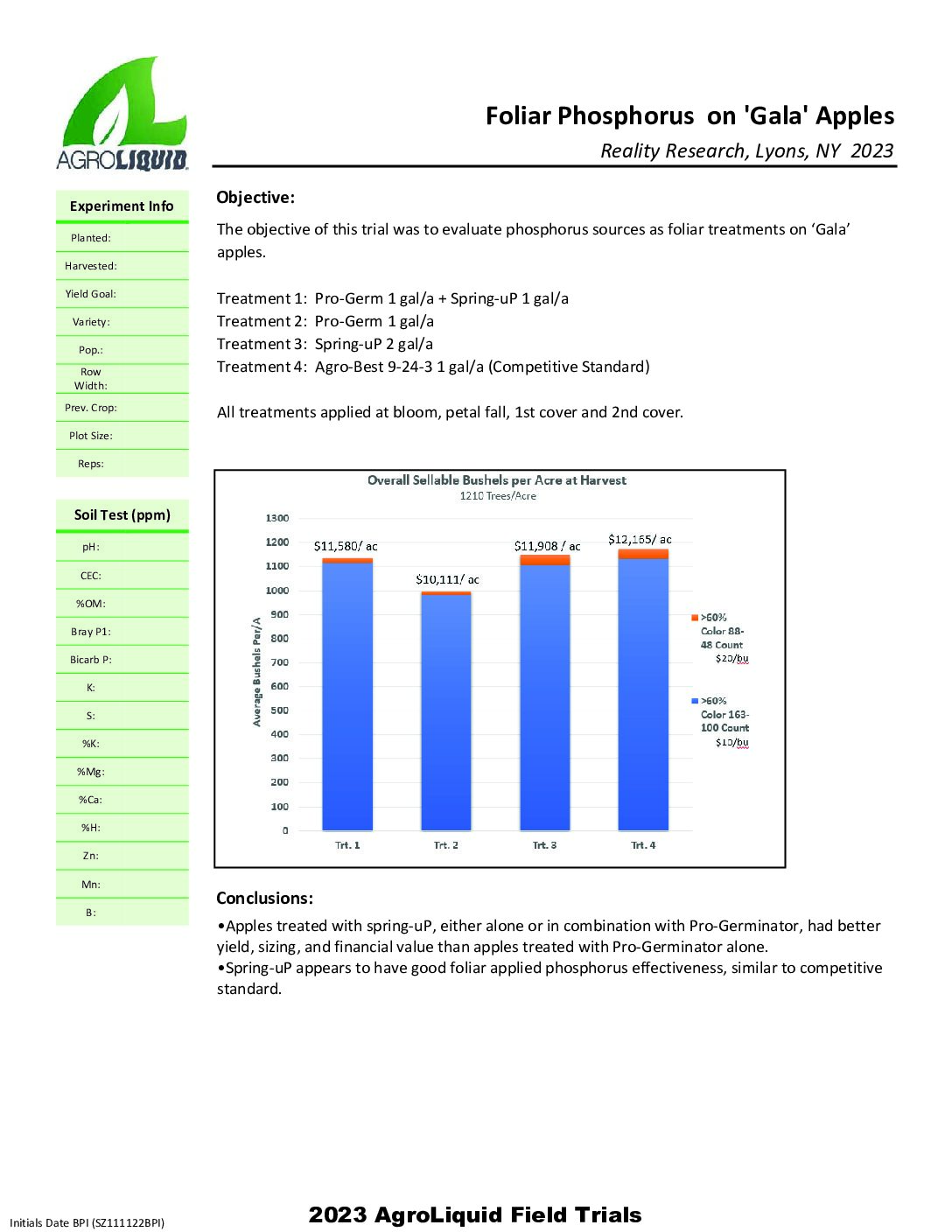 Crops: Apples. States / Provinces: New York. Nutrients: Phosphorus. Years: 2023. Applications: Foliar.