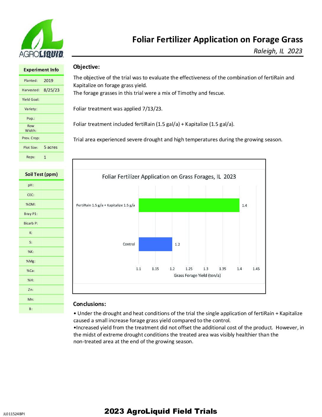 Crops: Grass forage. States / Provinces: Illinois. Nutrients: Programs. Years: 2023. Applications: Foliar.