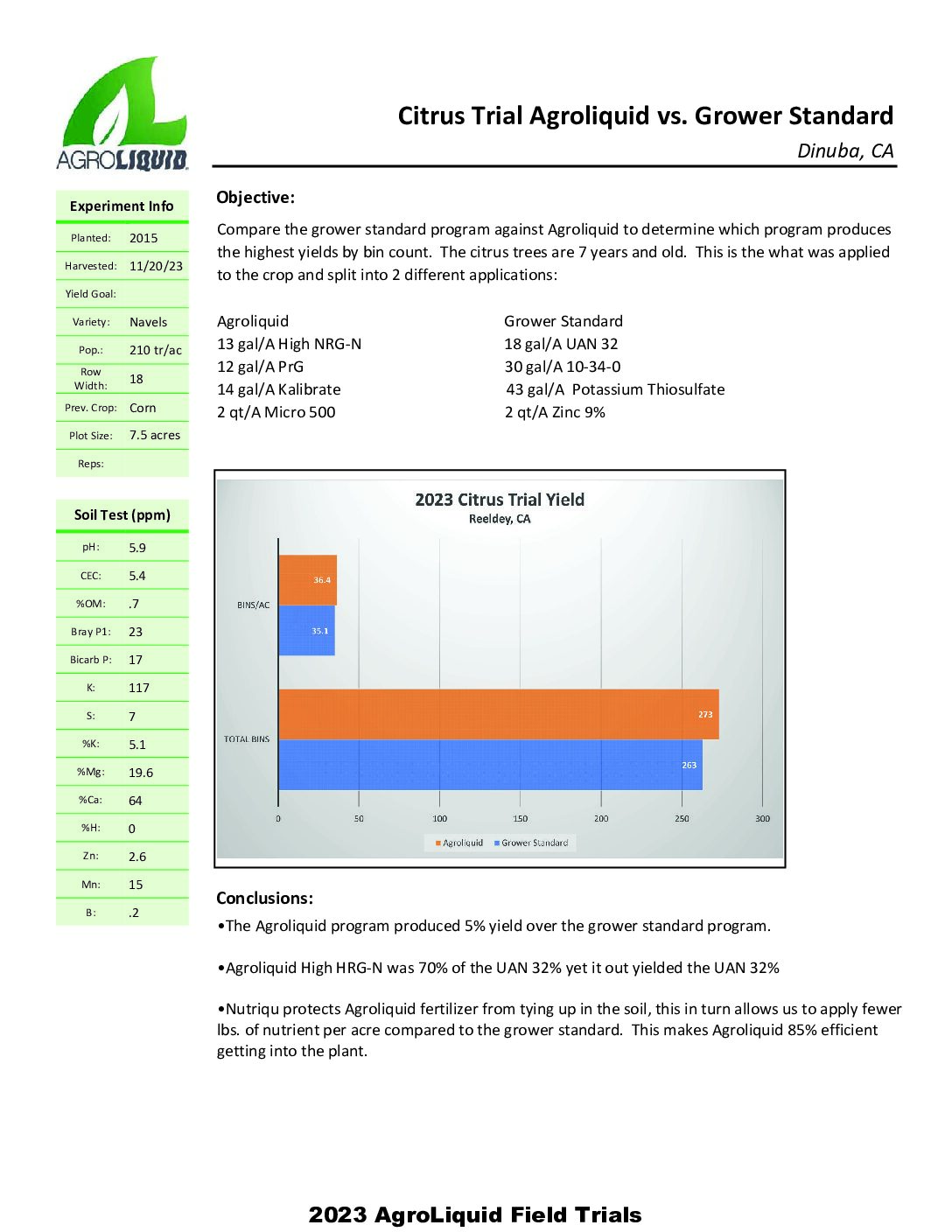 Crops: Citrus. States / Provinces: California. Nutrients: Micronutrients, Nitrogen, Phosphorus, and Potassium. Years: 2023.