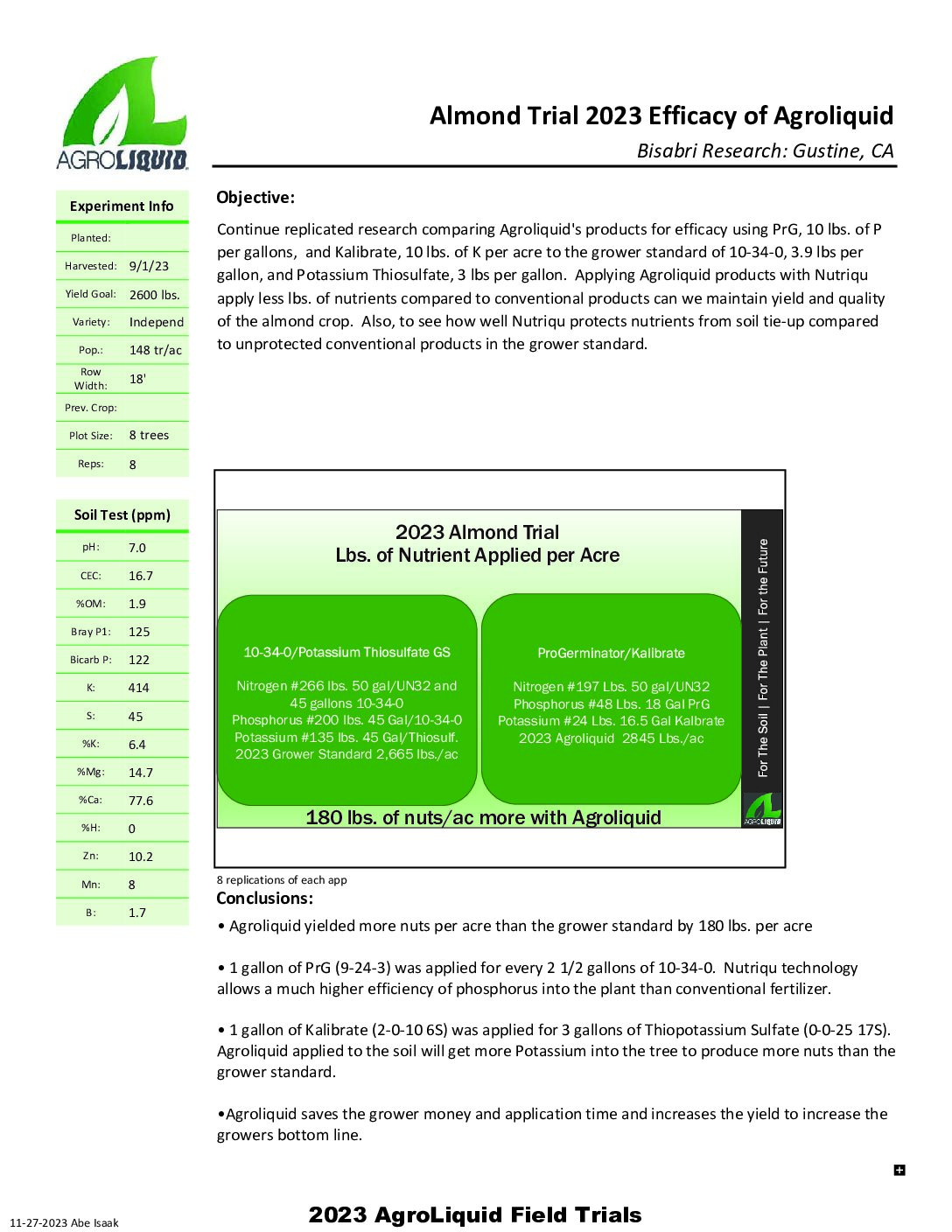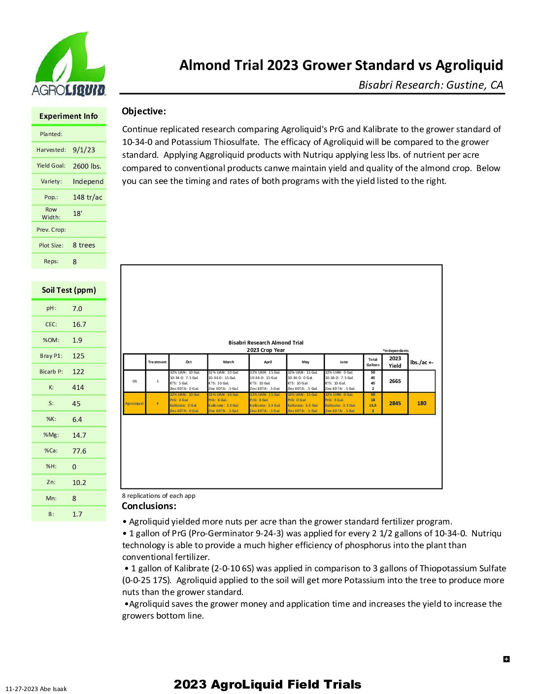 Grower Standard vs AgroLiquid Program in Almonds 2023