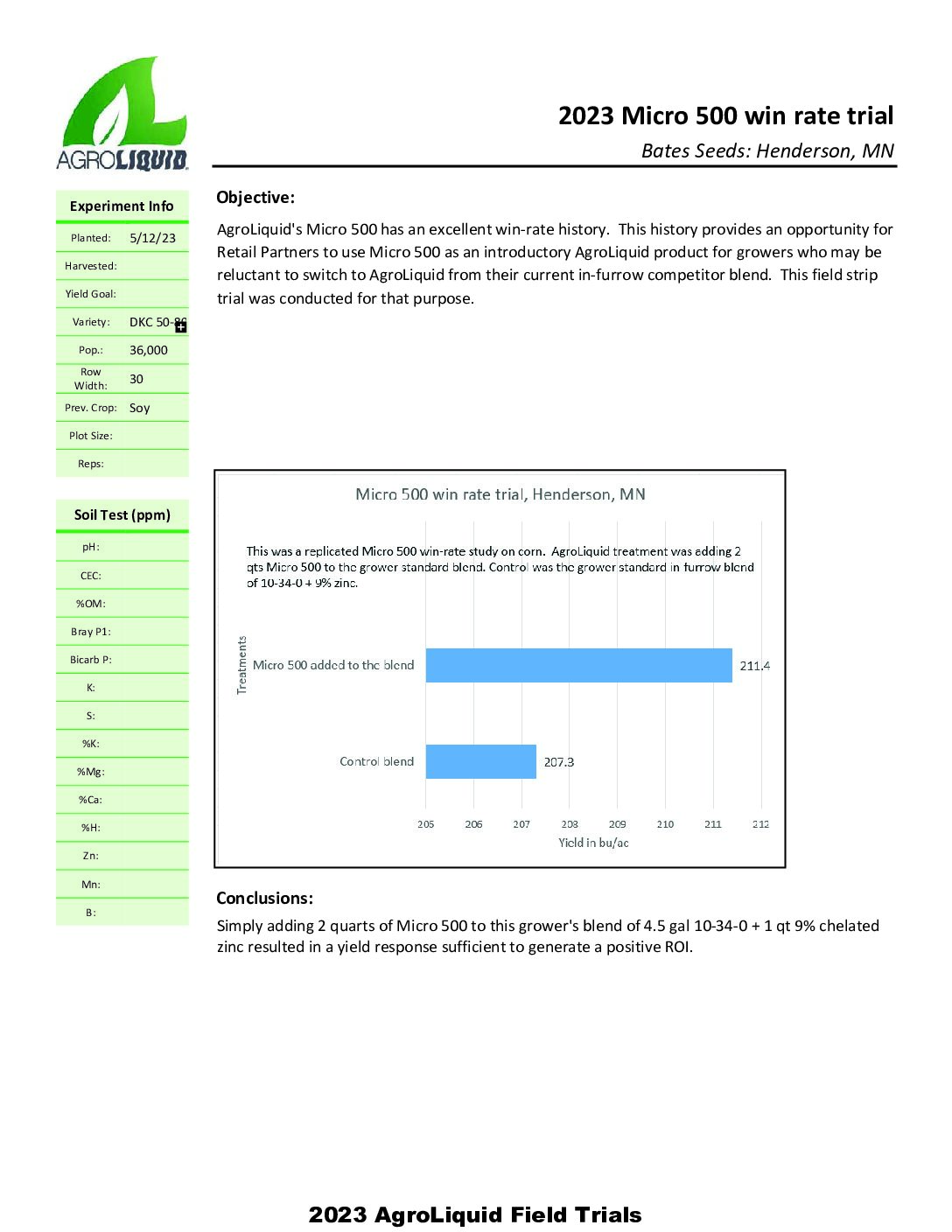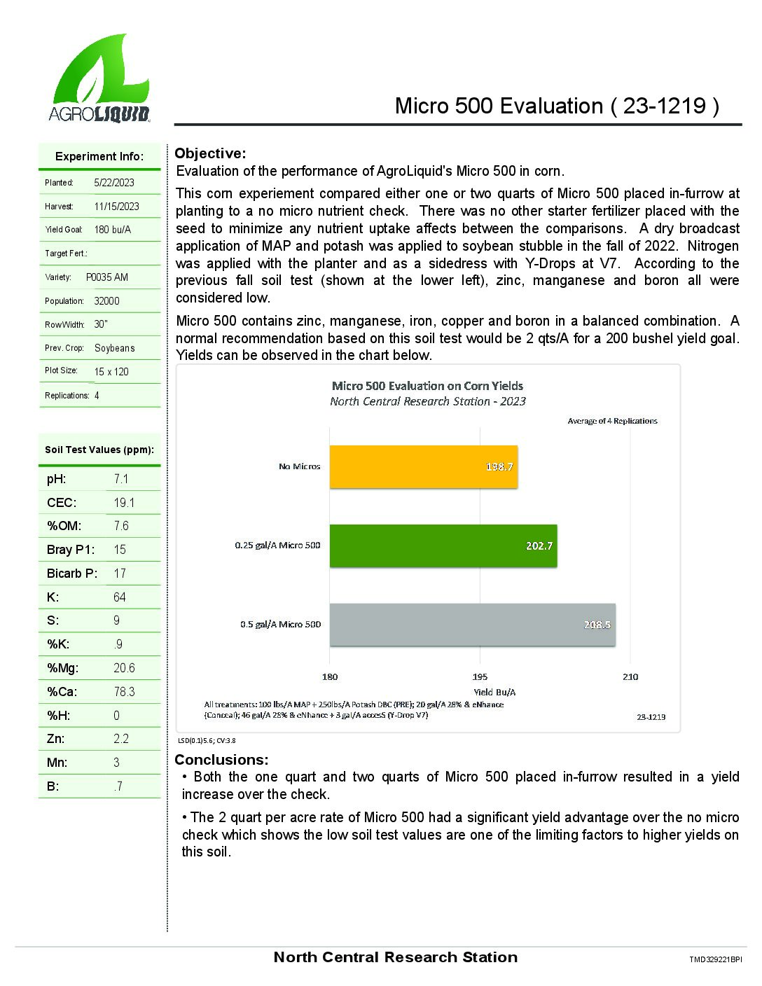 Micro 500 experiments may be few.  This is an excellent test to show the value of micro nutrients on corn.