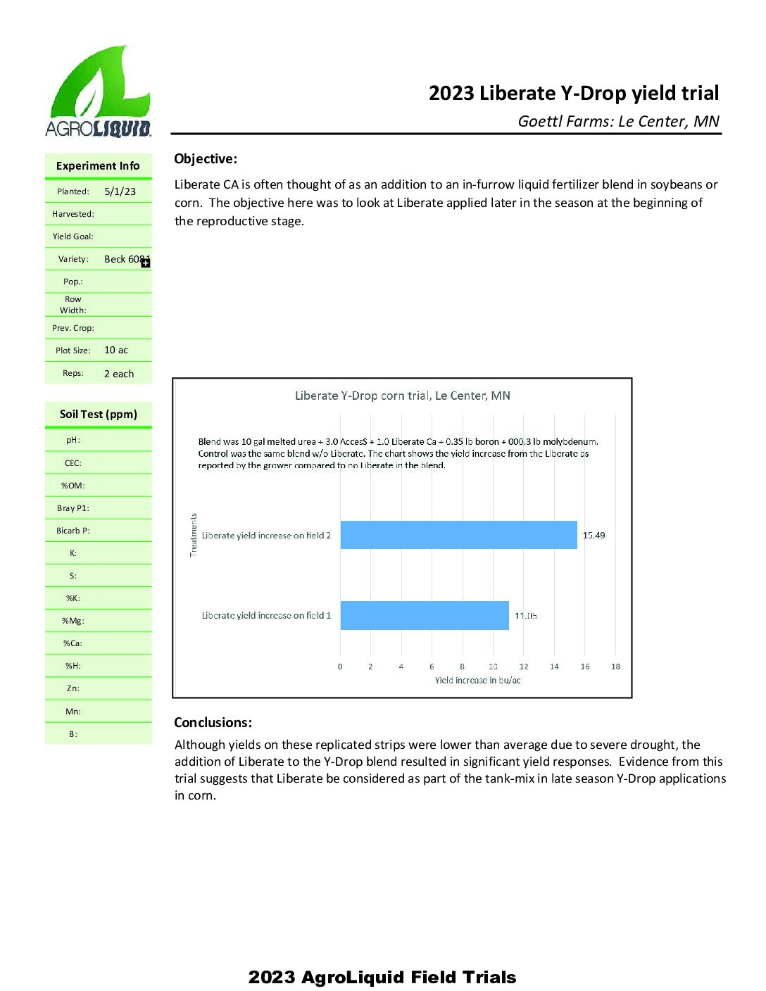 Crops: Corn. States / Provinces: Minnesota. Nutrients: Calcium. Years: 2023. Applications: Y-Drop.