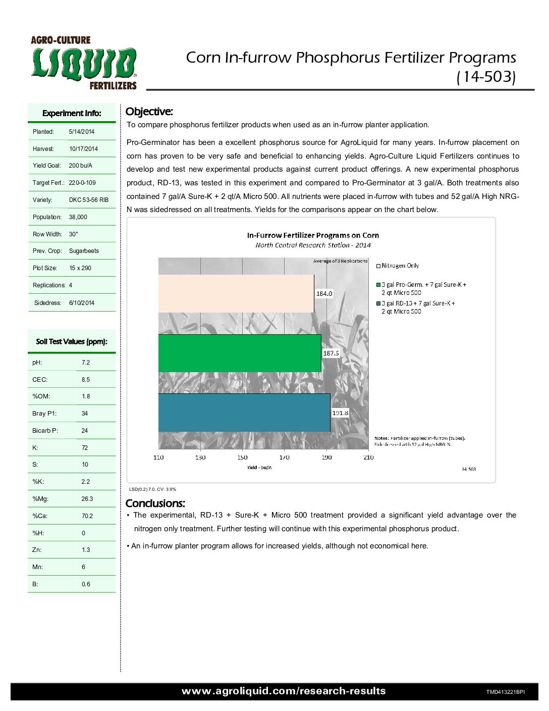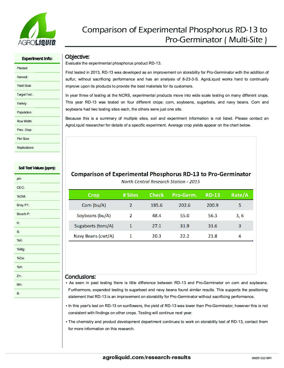 Comparison of Experimental Phosphorus RD-13 to Pro-Germinator ( Multi-Site )