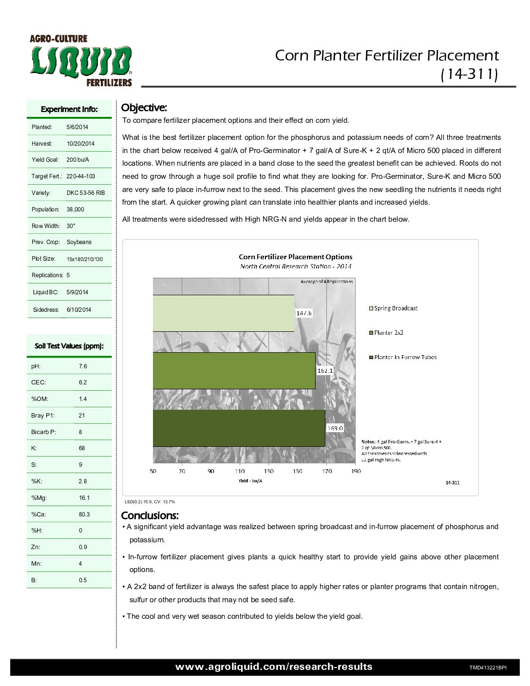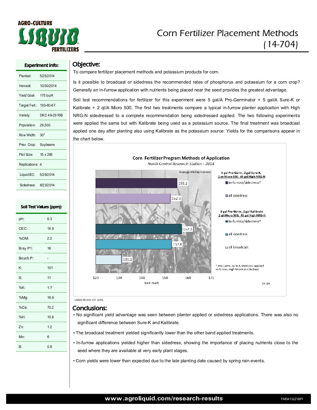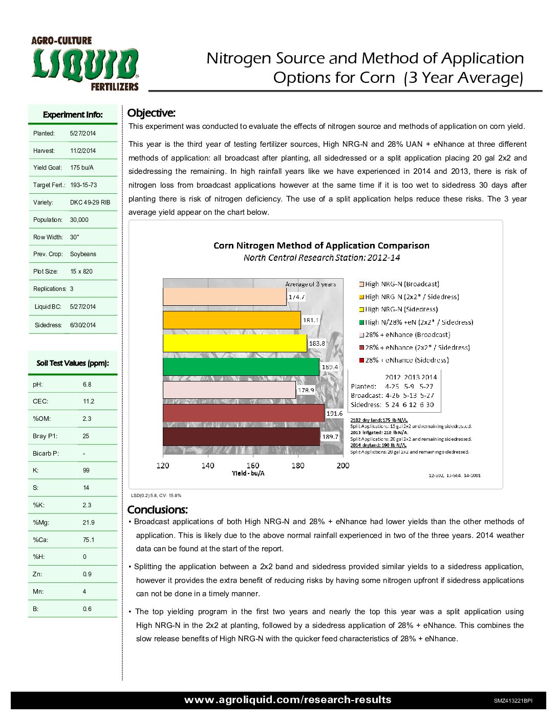 Crops: Corn. States / Provinces: Michigan. Nutrients: Phosphorus, Potassium, and Programs. Years: 2014. Applications: Broadcast, Coulter Inject, and Planting.