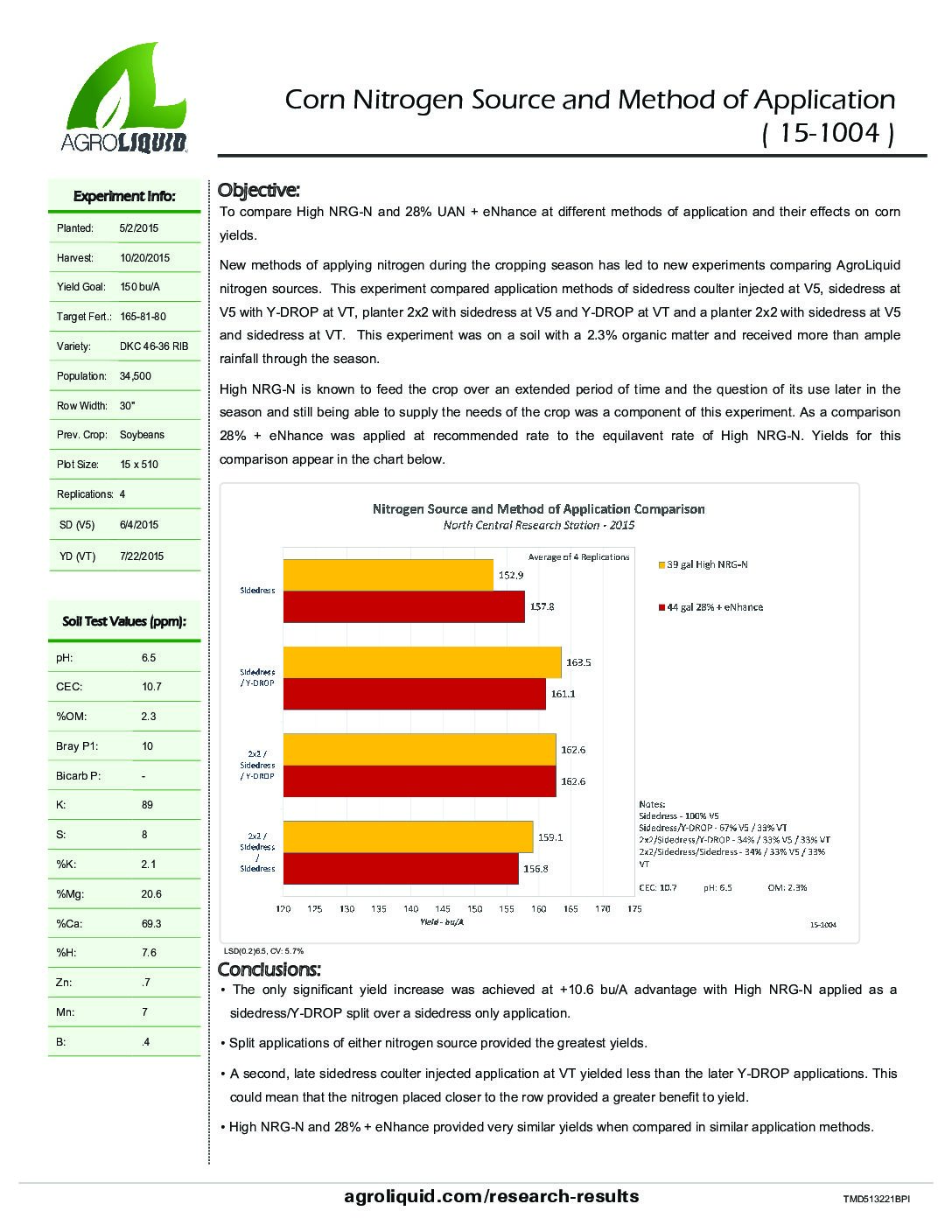 Crops: Corn. States / Provinces: Michigan. Nutrients: Nitrogen. Years: 2015. Applications: Coulter Inject, Planter, and Y-Drop.