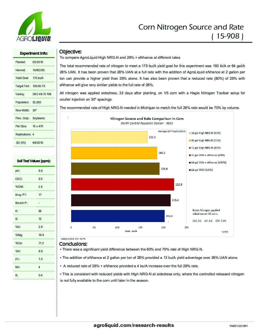 Crops: Corn. States / Provinces: Michigan. Nutrients: Nitrogen. Years: 2015. Applications: Broadcast, Coulter Inject, and Y-Drop.