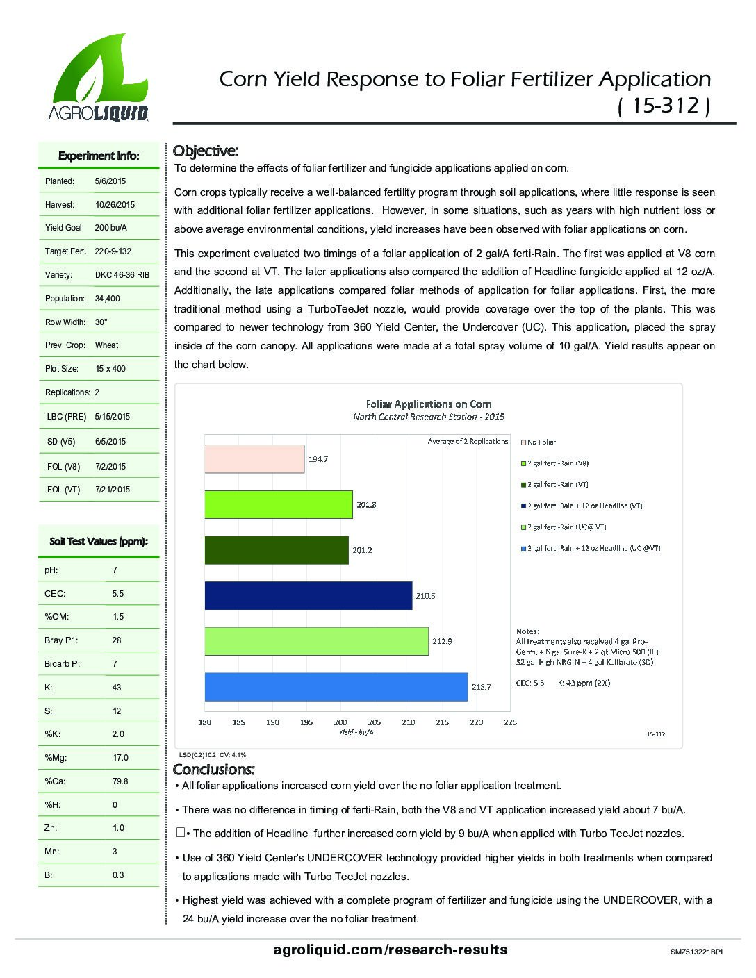 Crops: Corn. States / Provinces: Michigan. Years: 2015. Applications: Foliar and UnderCover.