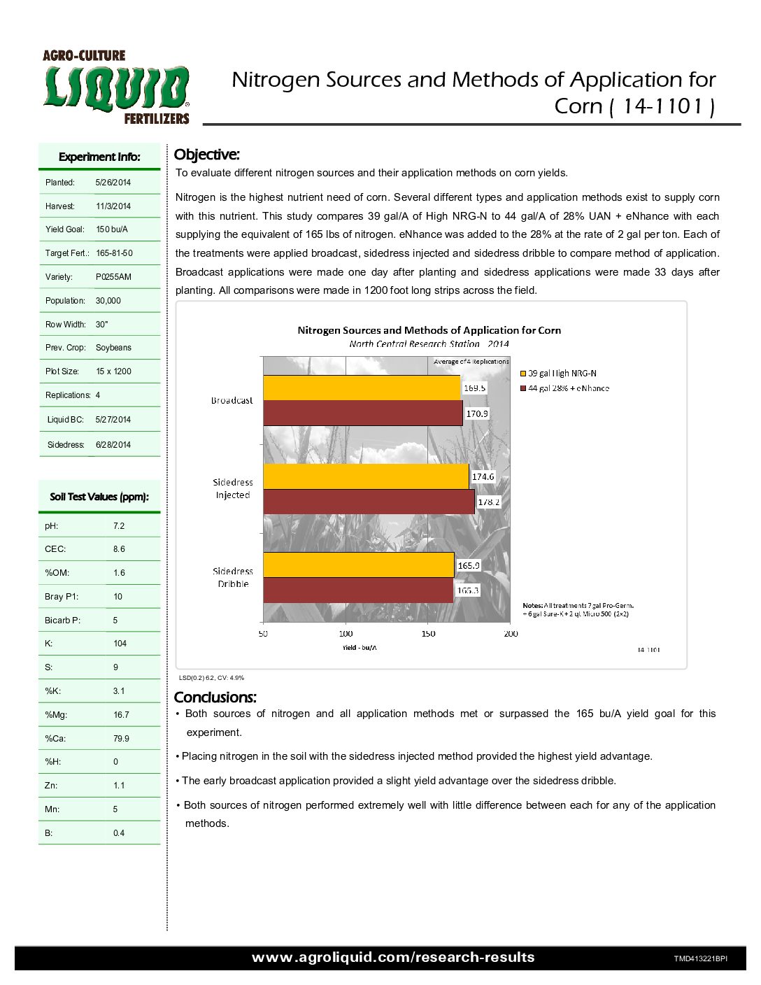 Crops: Corn. States / Provinces: Michigan. Nutrients: Nitrogen. Years: 2014. Applications: Coulter Inject.