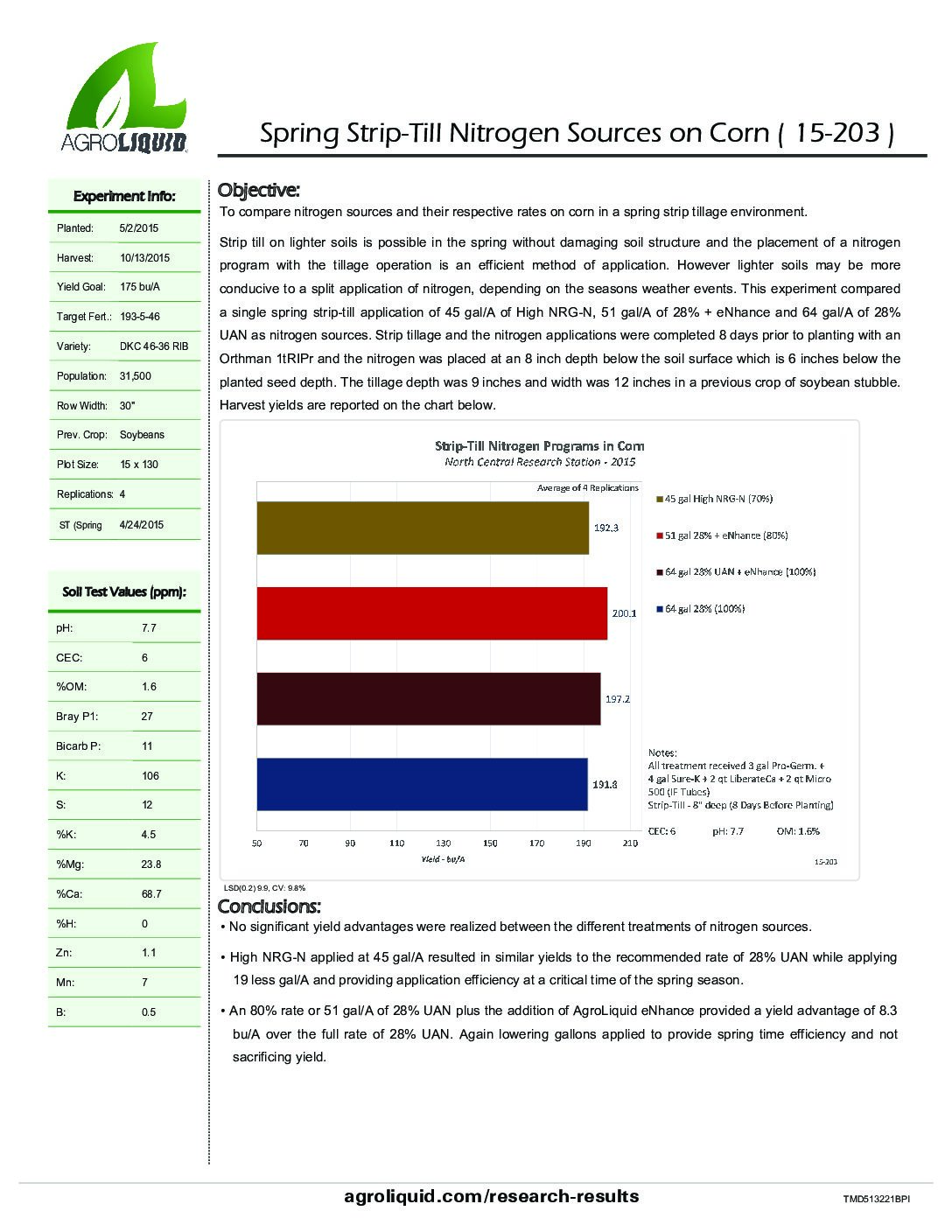 Crops: Corn. States / Provinces: Michigan. Nutrients: Nitrogen. Years: 2015. Applications: Strip-Till.