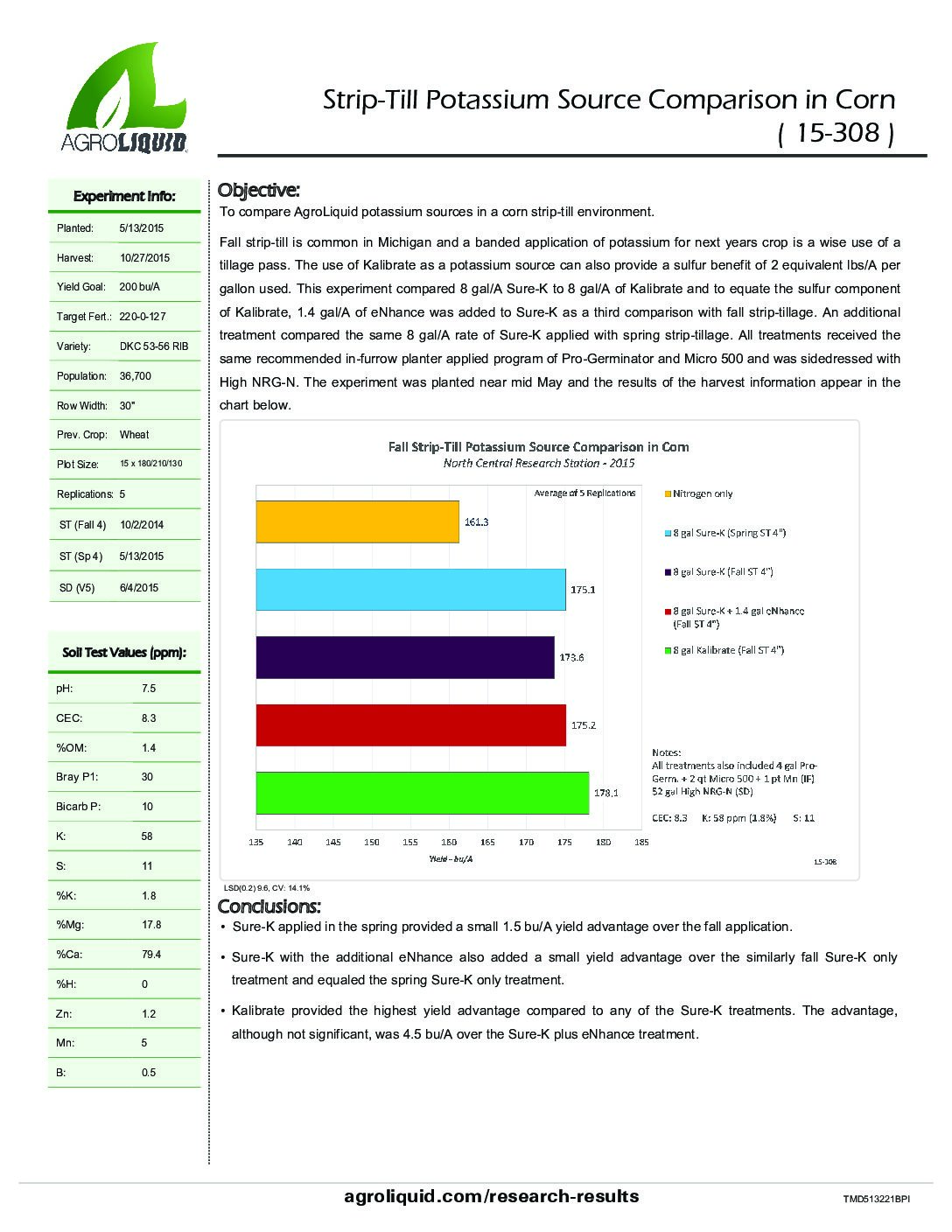 Crops: Corn. States / Provinces: Michigan. Nutrients: Potassium. Years: 2015. Applications: Strip-Till.