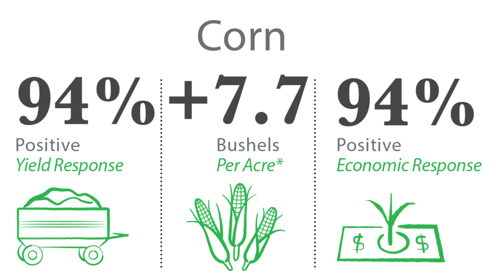 We’ve proven, time and again, that AgroLiquid’s eNhance in-furrow can improve yields. Research conducted at the North Central Research Station, along with in field trials across the U.S., has built a database of yield comparisons to help determine the likelihood of seeing a positive response, both agronomically and economically. Seventeen trials from multiple years and locations shows that over 94% of the time, adding eNhance to a planter fertilizer program shows a positive yield response along with an economic return of those fertilizer dollars invested. Applied at typical rate of 2 qt/A, on average a 7.7 bu/A yield increase was achieved. Having this data helps our sales team make recommendations and growers make better management decisions.