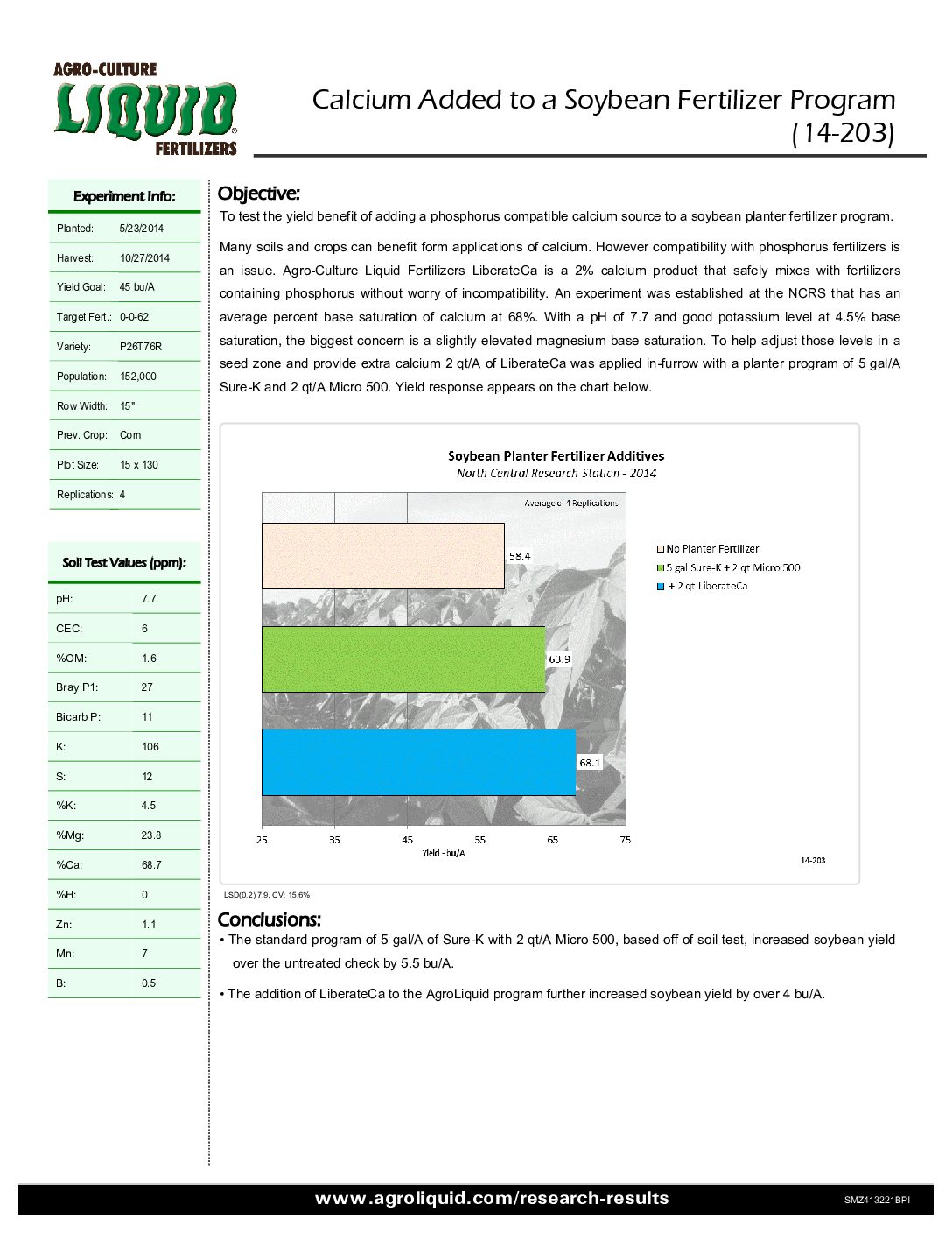 Crops: Soybeans. States / Provinces: Michigan. Nutrients: Calcium. Years: 2014. Applications: Planting.