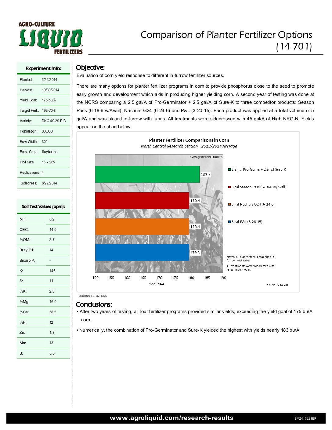 Crops: Corn. States / Provinces: Michigan. Nutrients: Phosphorus, Potassium, and Programs. Years: 2014. Applications: Strip-Till.