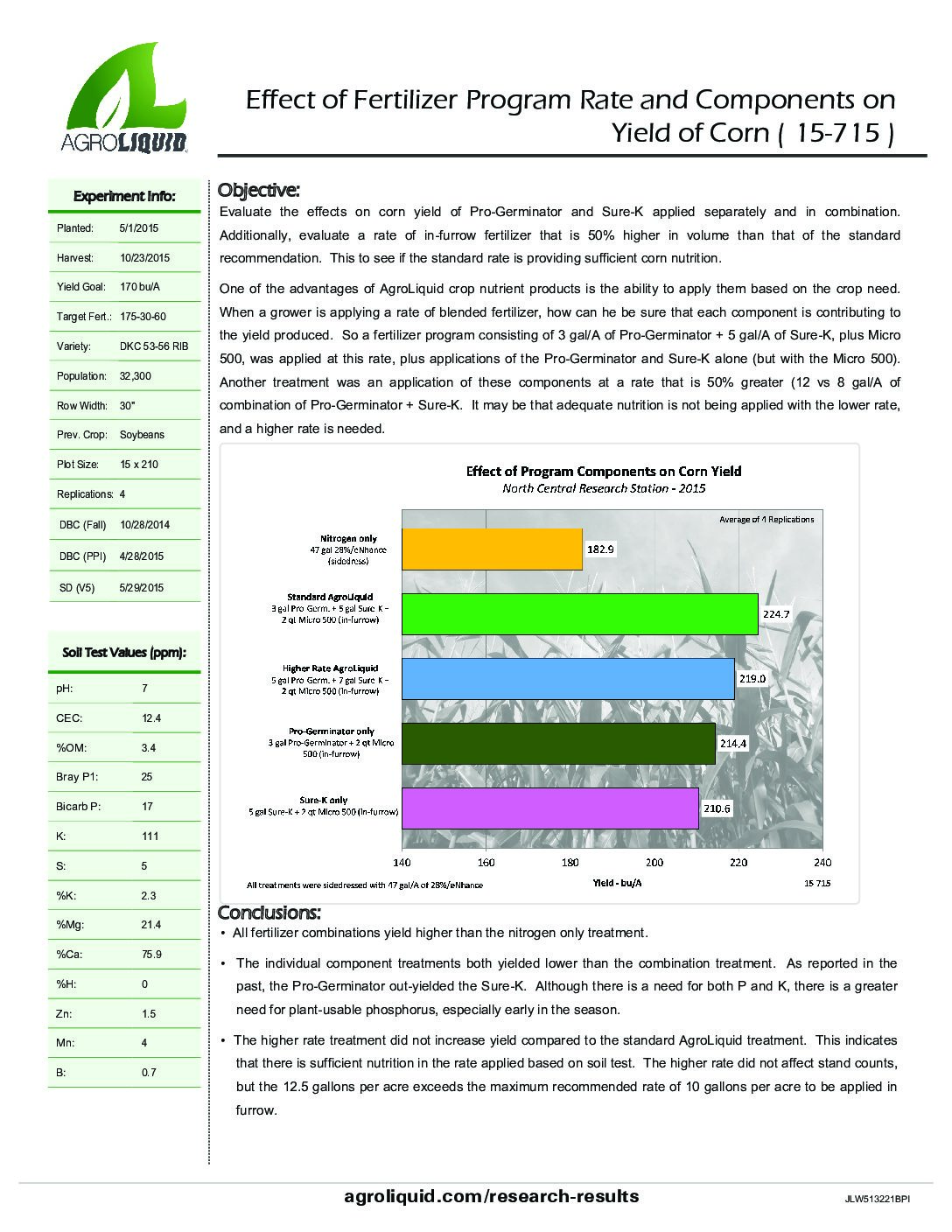 Effect of Fertilizer Program Rate and Components on Yield of Corn