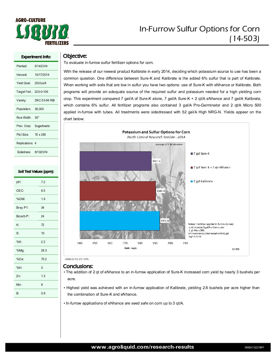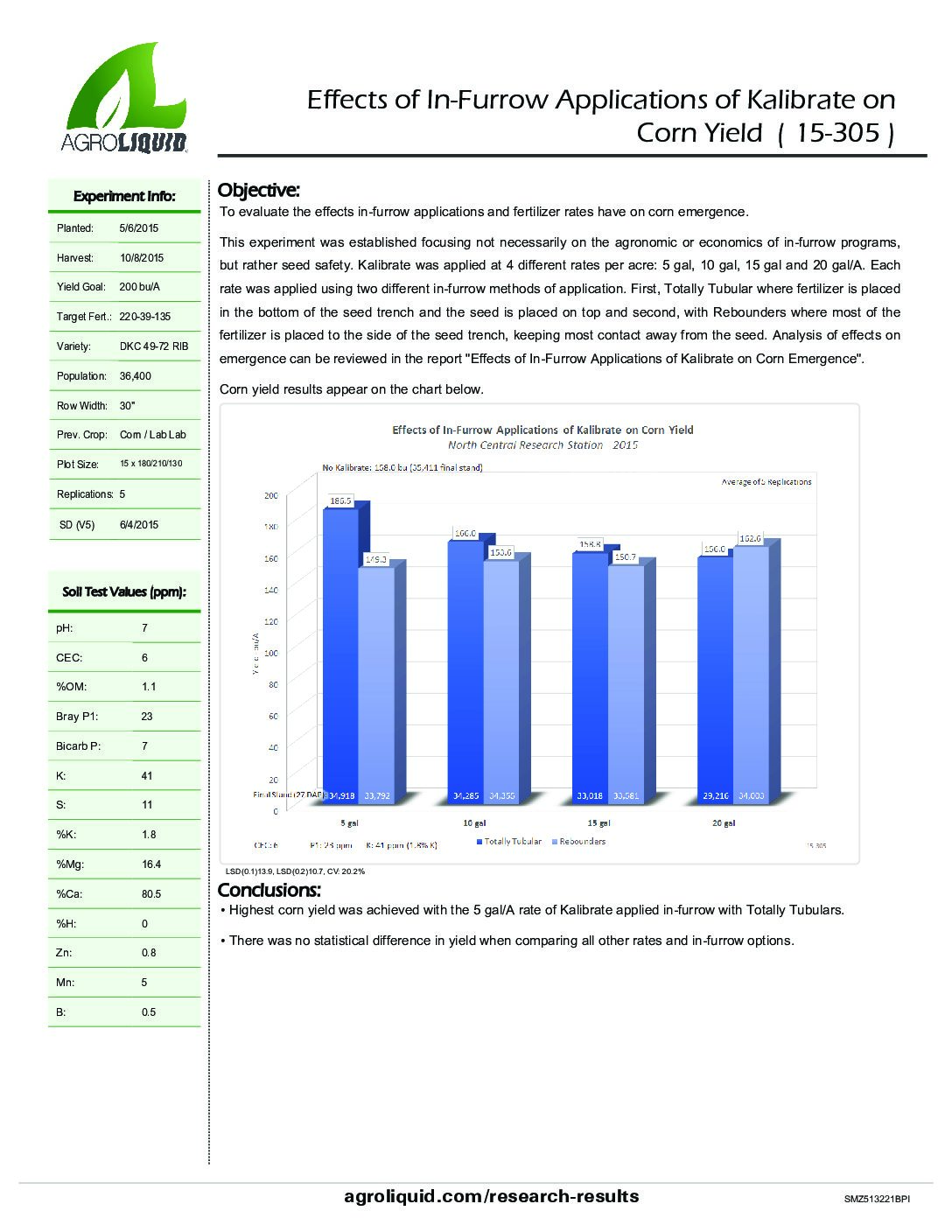 Effects of In-Furrow Applications of Kalibrate on Corn Yield