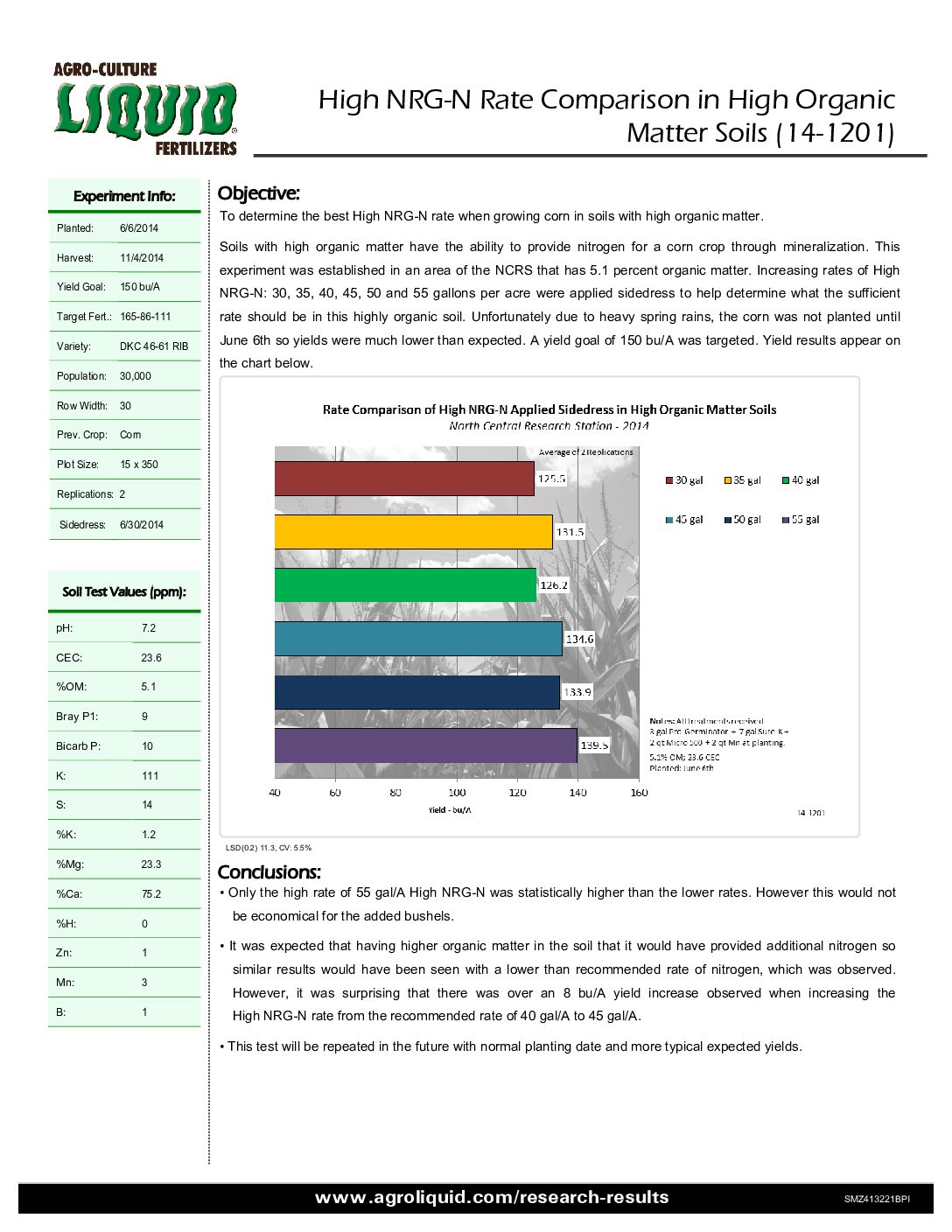 High NRG-N Rate Comparison in High Organic Matter Soils